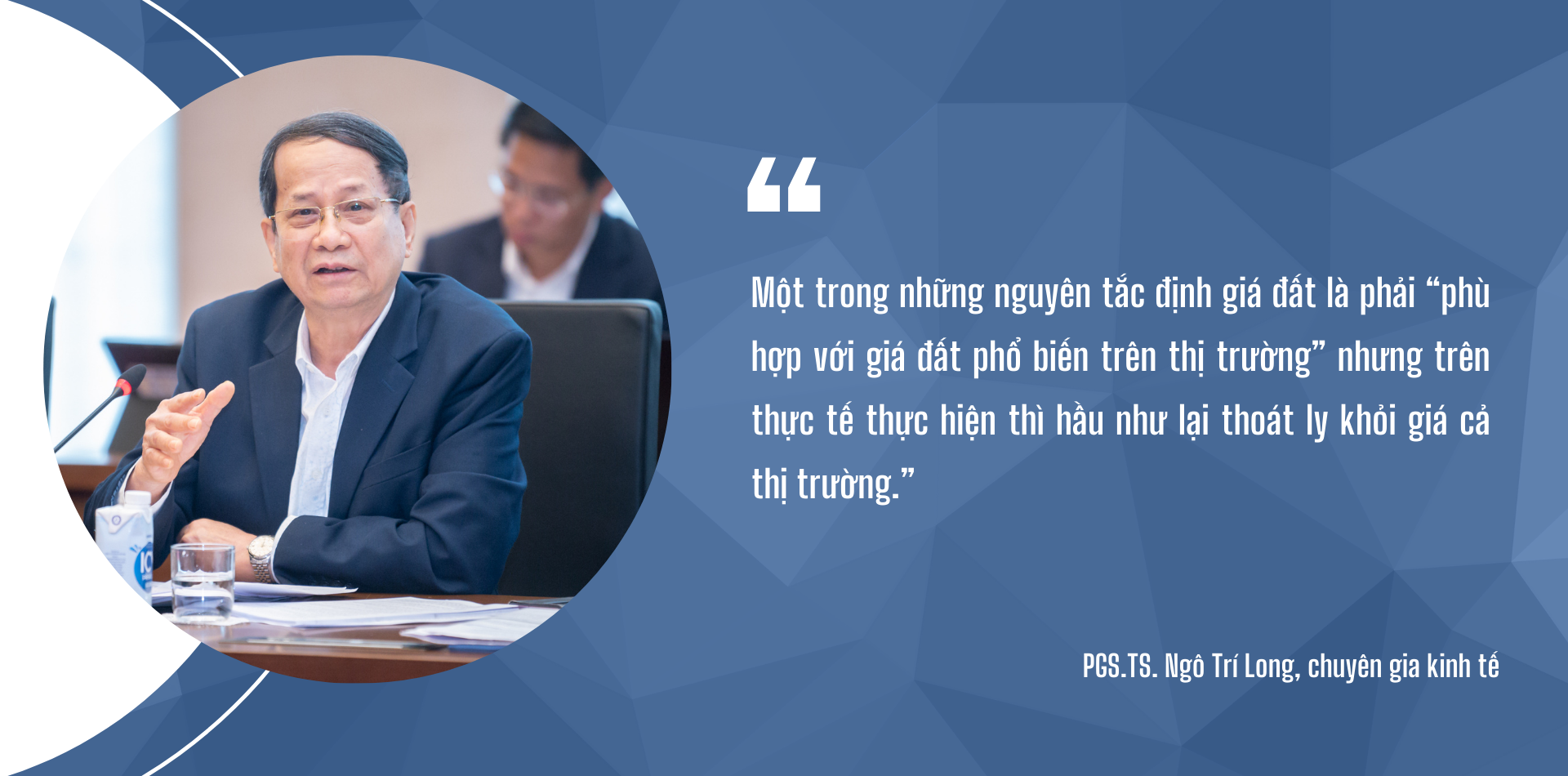 Chia sẻ về những tồn tại, bất cập trong công tác định giá đất hiện nay, PGS.TS. Ngô Trí Long, chuyên gia kinh tế cho hay: Một trong những nguyên tắc định giá đất là phải “phù hợp với giá đất phổ biến trên thị trường” nhưng trên thực tế thực hiện thì hầu như lại thoát ly khỏi giá cả thị trường.